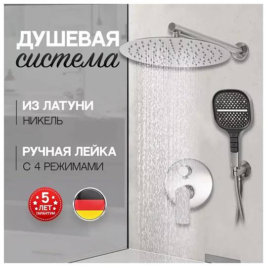 Душевая система встраиваемая (без излива) Hansberge H6090NK, никель купить по цене 34 920 руб.