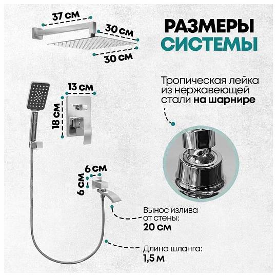 Данный товар подойдет вам, если вы ищете смеситель для ванны и душа, душевой гарнитур, душевую систему, душевой комплект, тропический душ со смесителем, душевую стойку со смесителем, тропический душа, тропический душ комплект, смеситель скрытого монтажа.