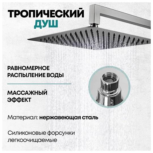 Данный товар подойдет вам, если вы ищете смеситель для ванны и душа, душевой гарнитур, душевую систему, душевой комплект, душевую стойку, тропический душ со смесителем, душевую стойку со смесителем, встраиваемый комплект для душа, тропический душ комплект.
