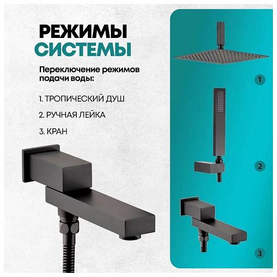 Душевая система встраиваемая Grocenberg GB5089BL-2, черный купить по цене 36 000 руб.