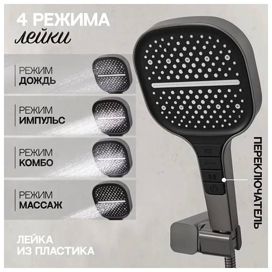 Ручная лейка: 13х13 см (4 режима)