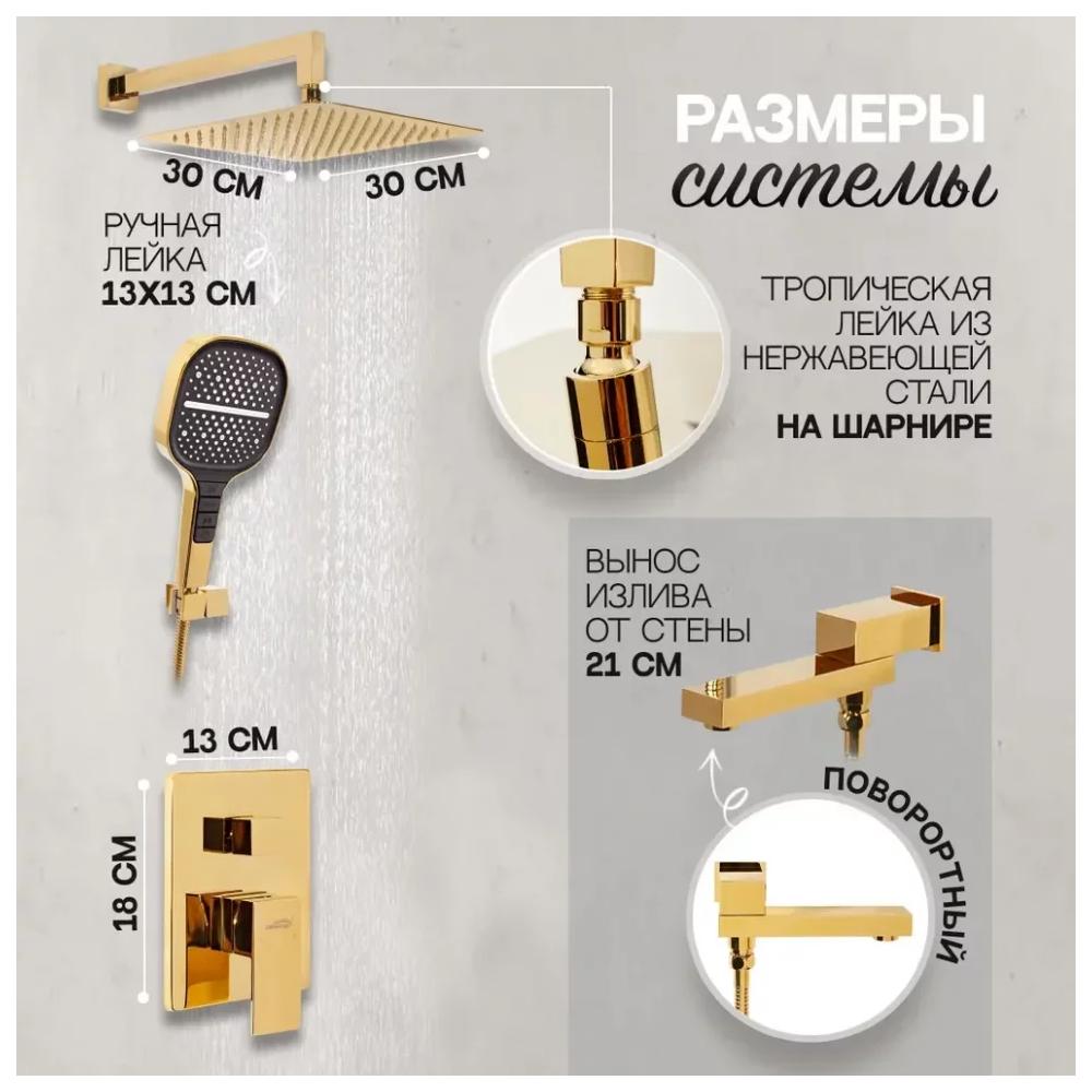 Душевая система встраиваемая Hansberge H6075GO, золото купить по цене 40 410 руб.
