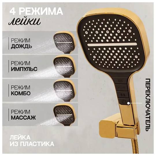 Ручная лейка: 13х13 см (4 режима)