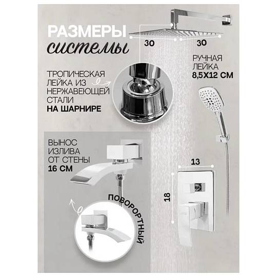 Душевая система встраиваемая Hansberge H6077W, белый/хром