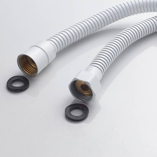 В комплекте идет шланг в двойной металлической оплетке длиной 150 см, обеспечивающий прочность и гибкость.