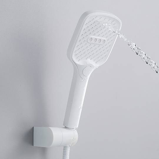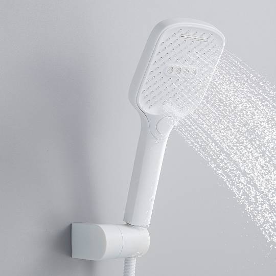 Ручная душевая лейка из ABS-пластика предлагает три режима струи с силиконовыми форсунками, облегчающими уход. Благодаря настенному держателю, можно менять угол наклона лейки по своему усмотрению.