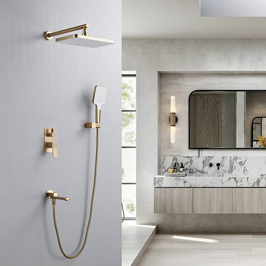 Встраиваемая душевая система Shevanik S9935G в цвете "золотой сатин" (матовое полированное золото) воплощает гармонию современного дизайна и передовых технологий, призванная сделать водные процедуры по‑настоящему комфортными и приятными. Основой конструкции служит прочный латунный корпус — как внешний, так и внутренний, — который обеспечивает исключительную надёжность и длительный срок службы изделия.