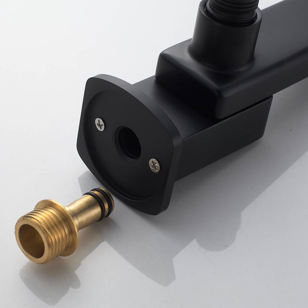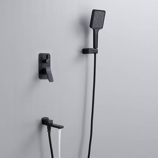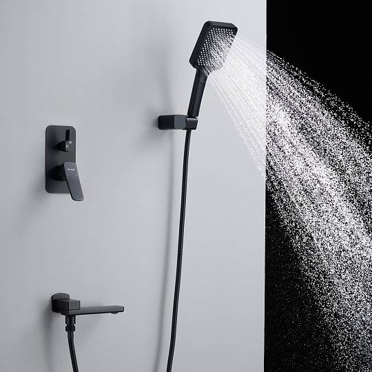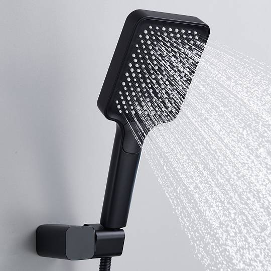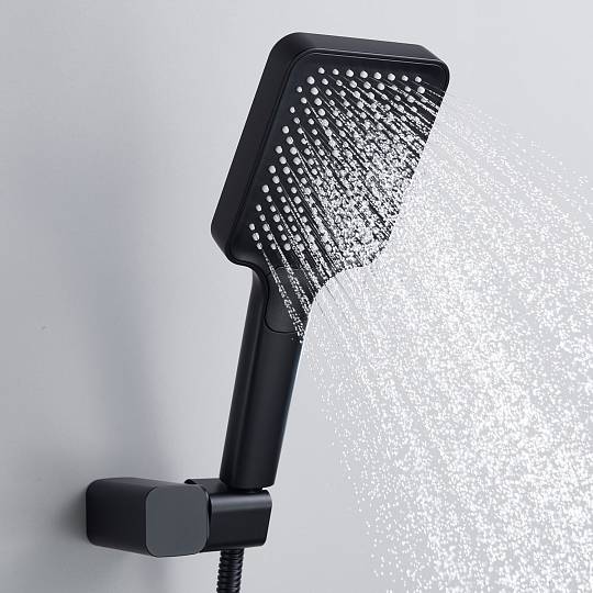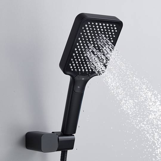 В комплект также входит ручная душевая лейка из ABS‑пластика с тремя режимами струи. Силиконовые форсунки лейки упрощают уход за изделием, а настенный держатель позволяет регулировать её наклон для максимально комфортного использования.