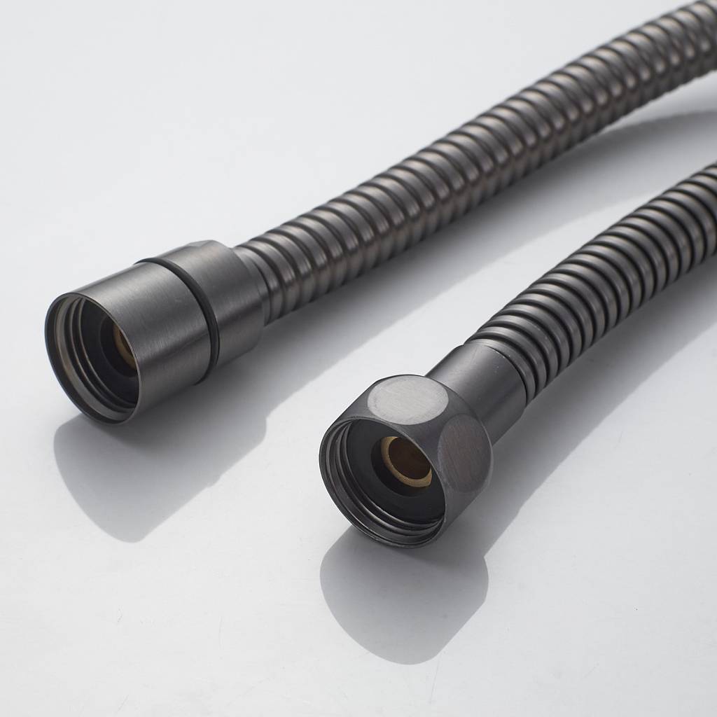 Прочность и гибкость системы обеспечивает душевой шланг в двойной металлической оплётке длиной 150 см.