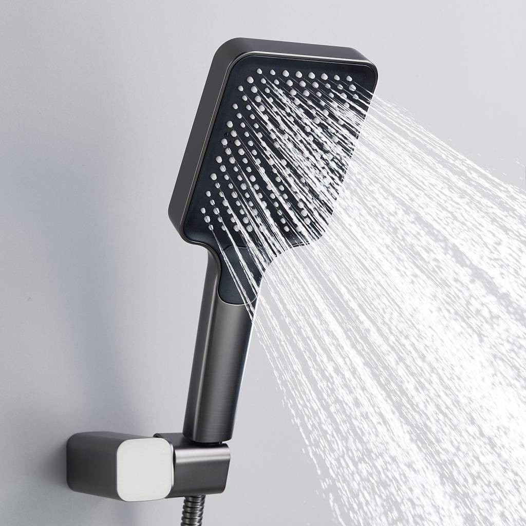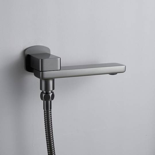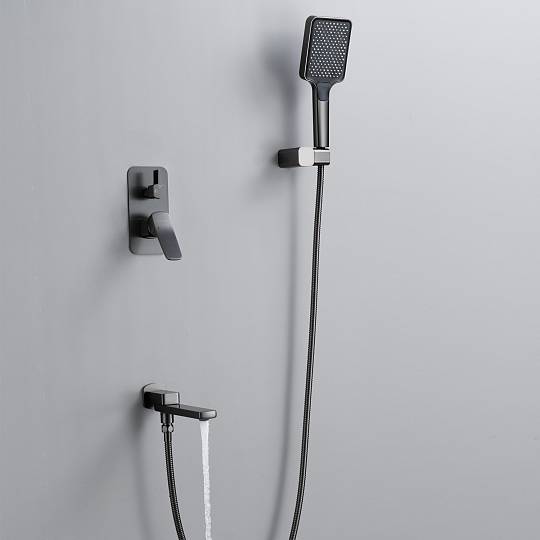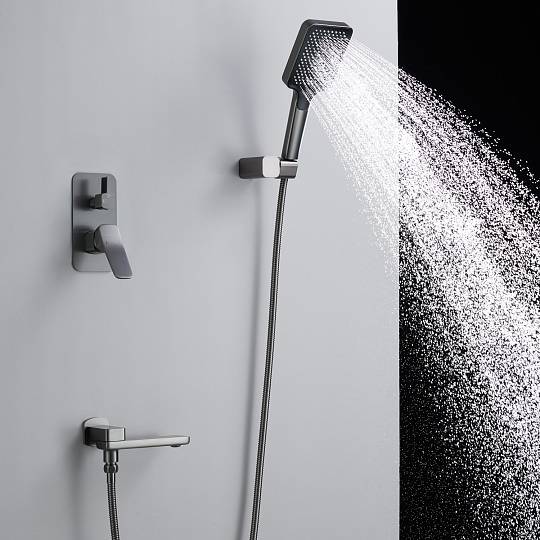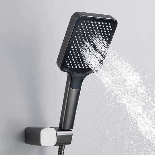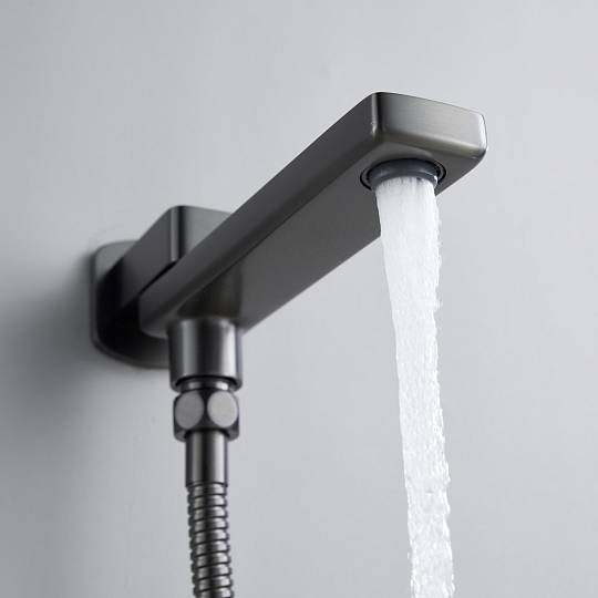В комплект также входит ручная душевая лейка из ABS‑пластика с тремя режимами струи. Силиконовые форсунки лейки упрощают уход за изделием, а настенный держатель позволяет регулировать её наклон для максимально комфортного использования.