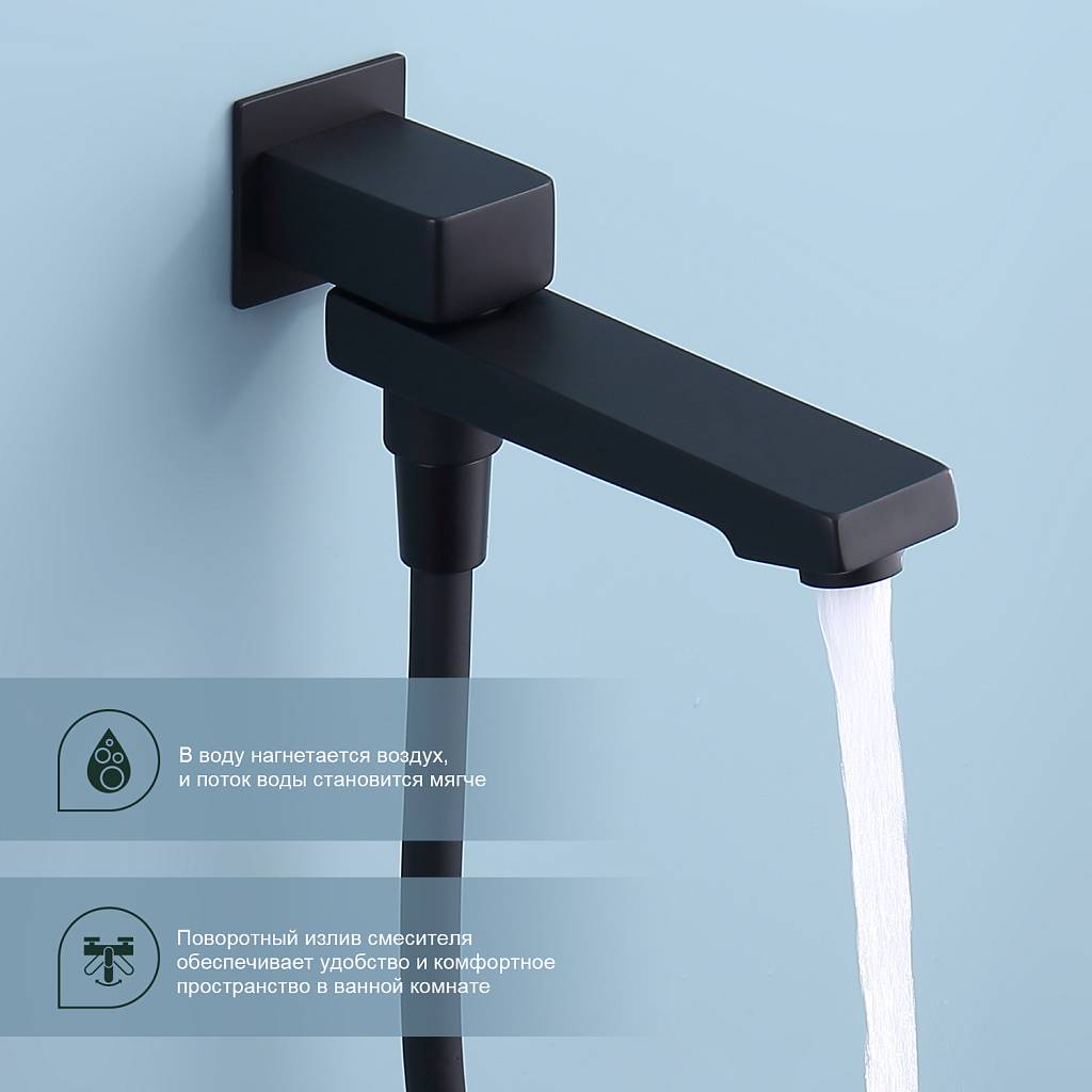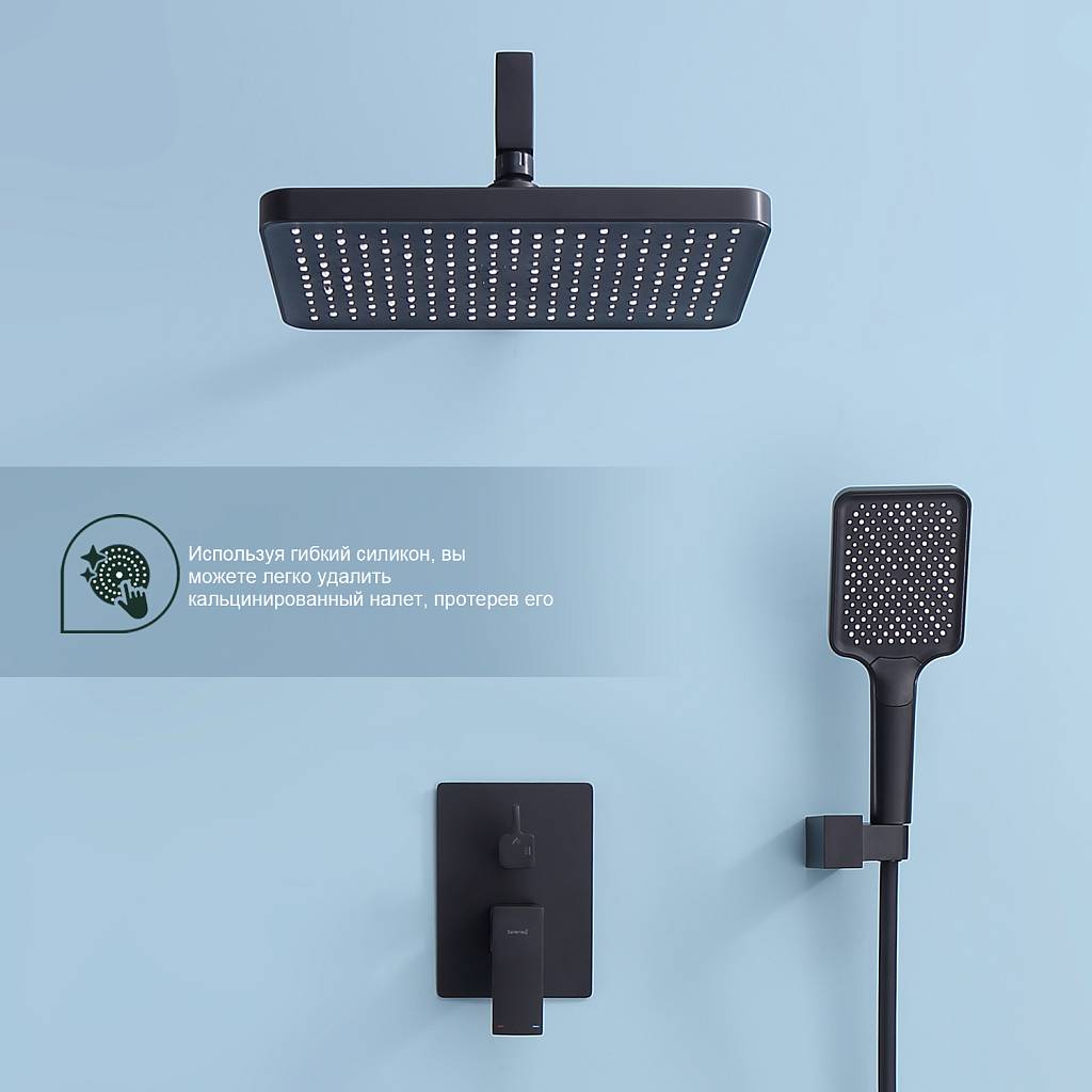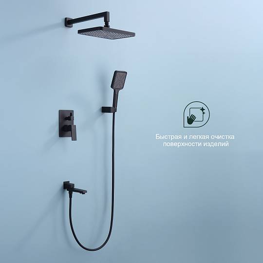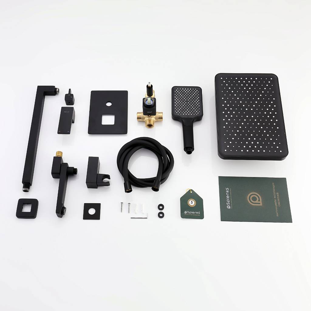 Душевая система встраиваемая Splenka S01.27.06, черный. Материал: латунь. Управление: однорычажное. Механизм: керамический картридж. Излив: поворотный. Аэратор. Стандарт подводки: G 1/2.
