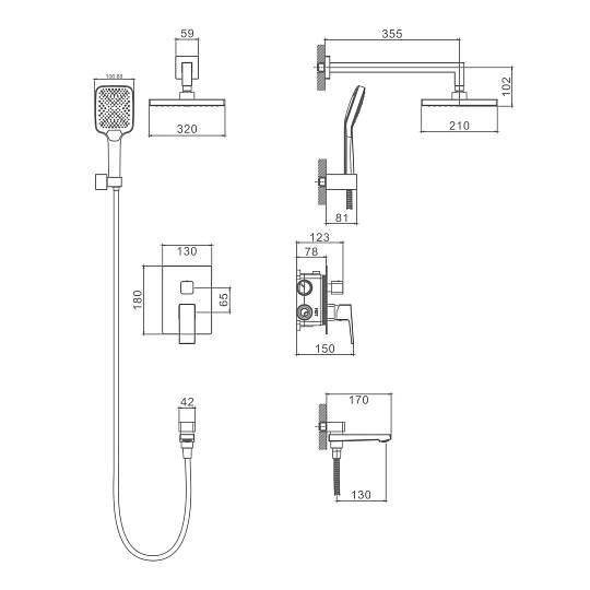 Форма верхнего душа:  прямоугольная. Размер верхнего душа (ШхД): 320х210 мм. Количество режимов струи ручного душа: 3. Монтаж: встраиваемый. Излив - функция переключения.