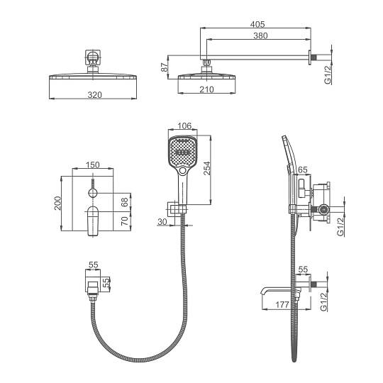 Душевая система встраиваемая Splenka S31.27.06, черный