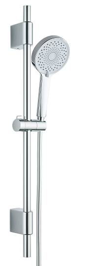 Высота: 710мм  Диаметр: 25мм   Корпус: нерж. сталь, хром   Спец.функции: держатель лейки плавающий FightFix ,подвижное крепление FreeMount  Комплектация: Душевой шланг 150см (армированный ,FreeRotation) ,  Душевая лейка (3 реж., диаметр 120мм), монтажный комплект