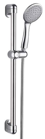 Высота: 603мм  Диаметр: 25мм   Корпус: нерж. сталь, хром   Спец.функции: держатель лейки плавающий FightFix  Комплектация: душевой шланг 150см (в метал. оплетке),  душевая лейка (1 реж., диаметр 105мм), Монтажный комплект
