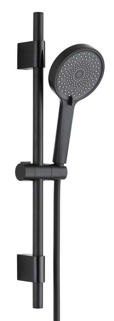Высота: 710мм  Диаметр: 25мм   Корпус: нерж. сталь, черный   Спец.функции: держатель лейки плавающий FightFix ,подвижное крепление FreeMount  Комплектация: Душевой шланг 150см (армированный ,FreeRotation) ,  Душевая лейка (3 реж., диаметр 120мм), монтажный комплект