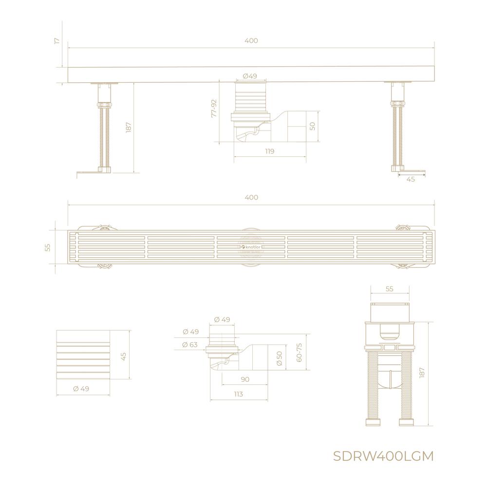 Душевой трап линейный Knotlor SDRW0400LGM, вороненая сталь купить по цене 14 000 руб.