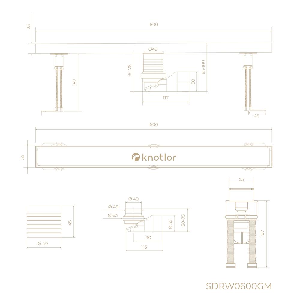 Душевой трап линейный Knotlor SDRW0600GM, вороненая сталь