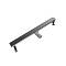 Линейный трап с двухсторонней декоративной решеткой в цвете матовая сталь. Оснащен сухим затвором и системой регулировки по высоте, пропускная способность 36 л/мин.