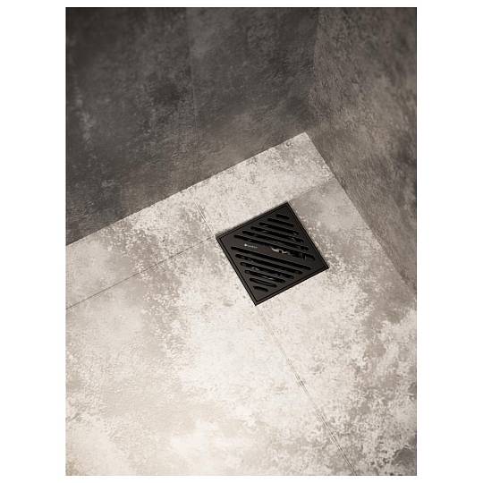 Квадратный трап в цвете матовый черный с пропускной способностью 65 л/мин. Оснащен сухим затвором и комплектом для удобного монтажа.