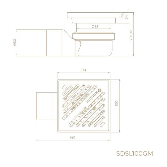 Душевой трап точечный Knotlor SDSL100GM, вороненая сталь