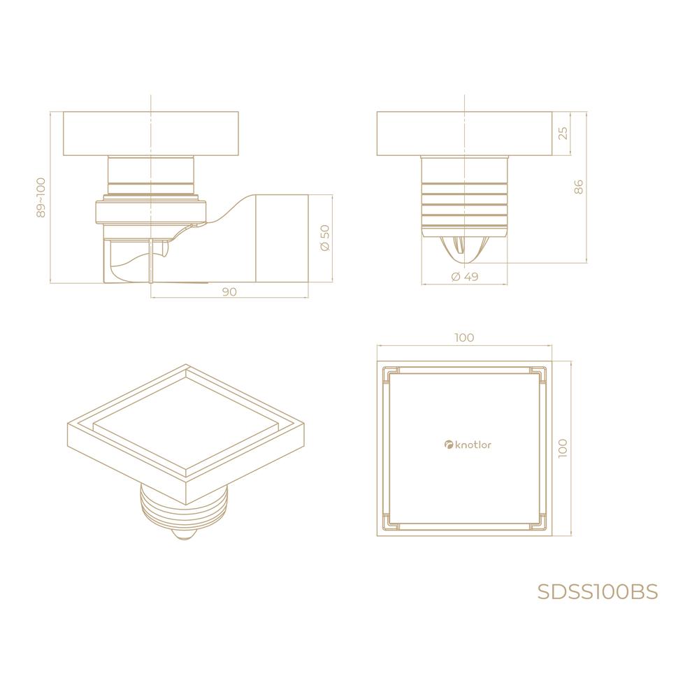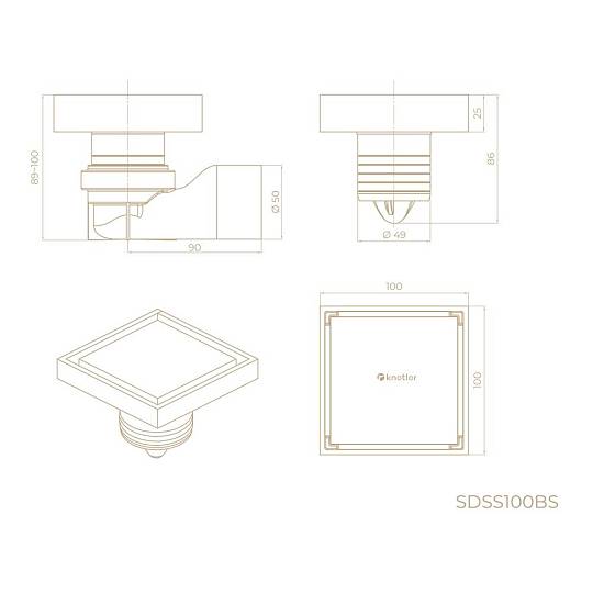 Душевой трап точечный Knotlor SDSS100BS, матовая сталь