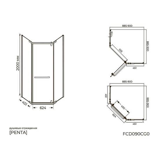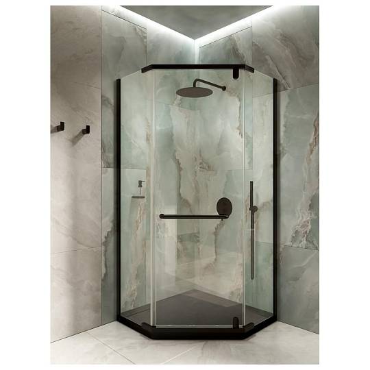 Душевой уголок Knotlor FCD090CG0BL 5-тиугольный 90х90х200, черный. Элегантное пятиугольное душевое ограждение 90×200×90 см с матовым черным профилем и ударопрочным стеклом 8 мм добавит стиль и функциональность вашей ванной комнате. Превращает душевую зону в просторный уголок, идеально подходящий для современных интерьеров.