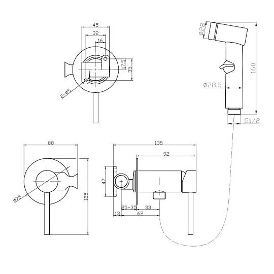 Наш гигиенический душ со смесителем – это сочетание стиля и функциональности. Корпус из латуни гарантирует долговечность, а хромированное покрытие придает элегантный вид. Металлический шланг длиной 1,2 м обеспечивает удобство использования, а стопорное кольцо надежно удерживает лейку в держателе. Качественный керамический картридж обеспечивает плавную регулировку температуры и напора воды.