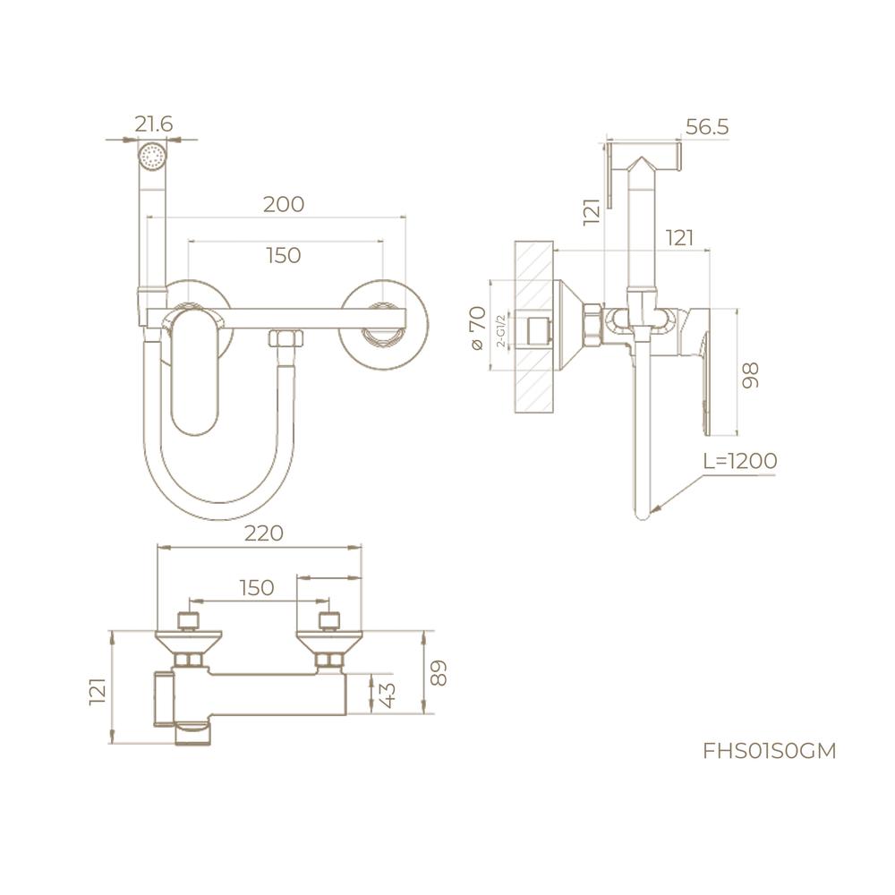 Гигиенический душ со смесителем Knotlor FHS01S0GM, вороненая сталь купить по цене 13 800 руб.