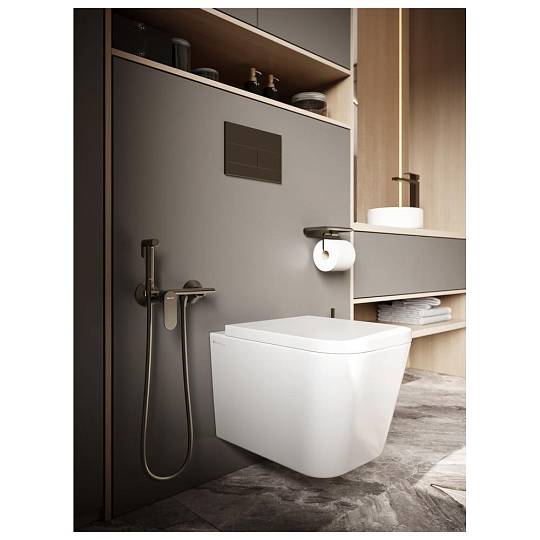 Гигиенический душ со смесителем Knotlor в цвете вороненой стали предназначен для наружной установки. Матовая поверхность подчеркивает индустриальный стиль, а латунный корпус гарантирует прочность. Модель оснащена полочкой, которую удобно использовать для хранения мелочей для ванны, телефона или аромадиффузоров.