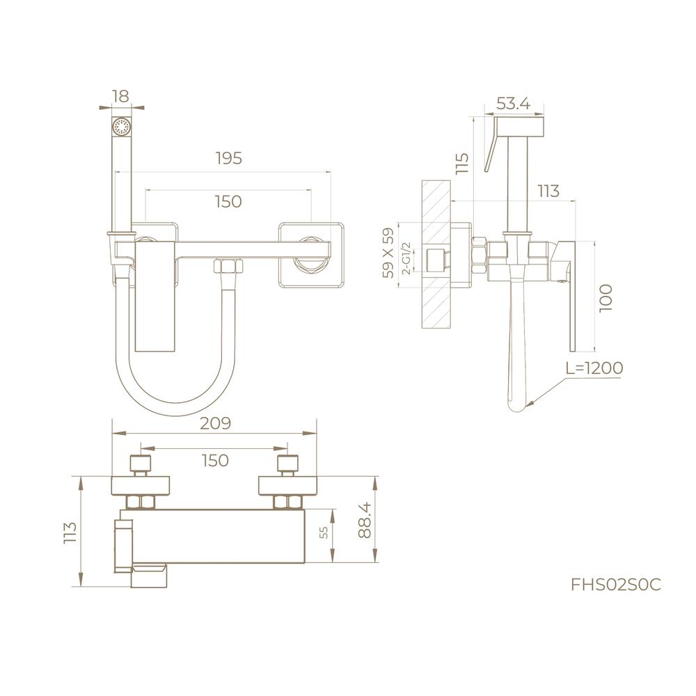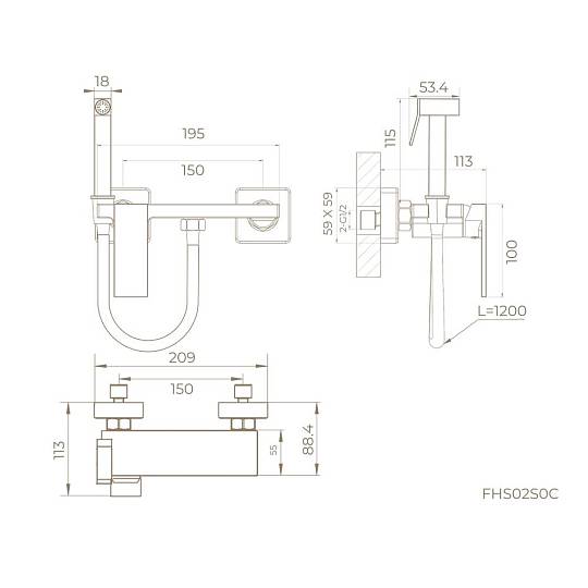 Гигиенический душ со смесителем Knotlor FHS02S0C, хром