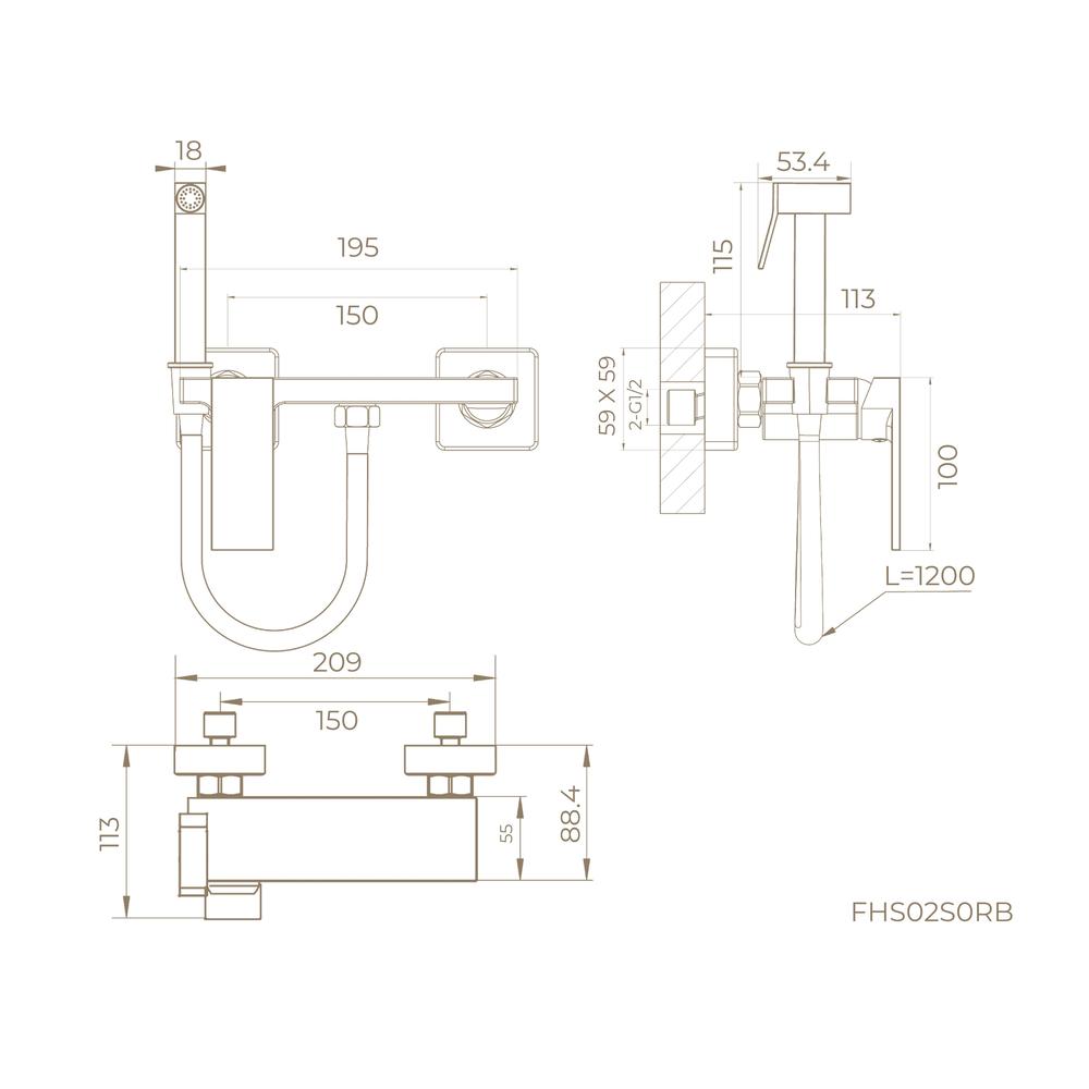 Гигиенический душ со смесителем Knotlor FHS02S0RB, бронза купить по цене 18 900 руб.
