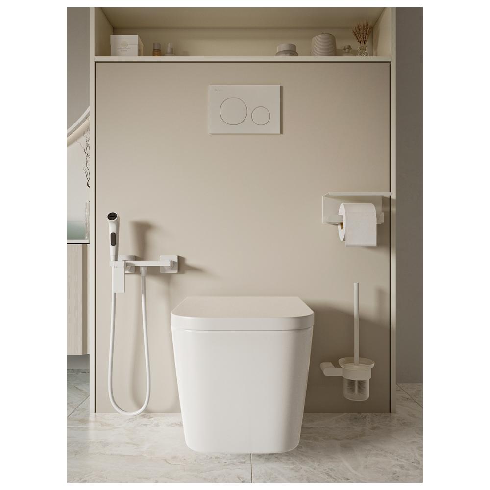 Гигиенический душ Knotlor MIST в матовом белом цвете предназначен для наружного монтажа и выполнен в строгих прямоугольных геометрических формах. Модель оснащена удобной полочкой для телефона, а гладкий ПВХ-шланг устойчив к перегибам и заломам. Отличительной особенностью является дизайнерская лейка из пластика, которая подчеркивает современный характер изделия и обеспечивает комфорт в использовании.