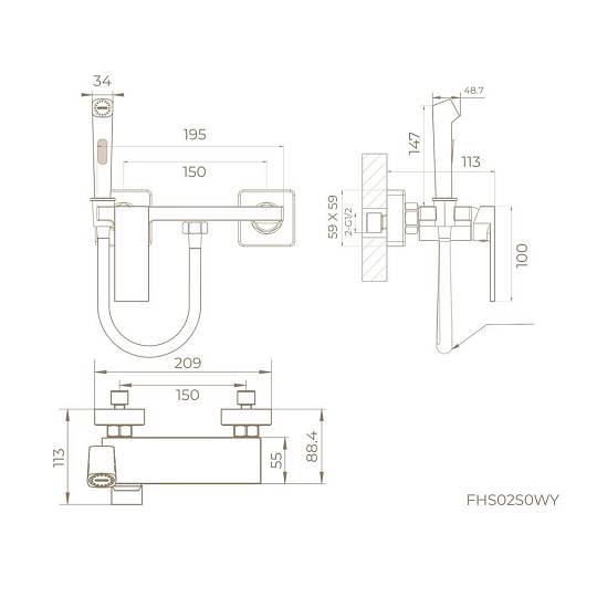 Гигиенический душ со смесителем Knotlor FHS02S0WY, белый