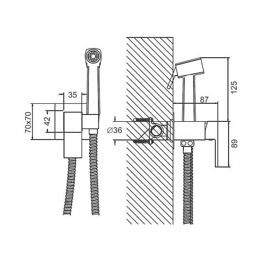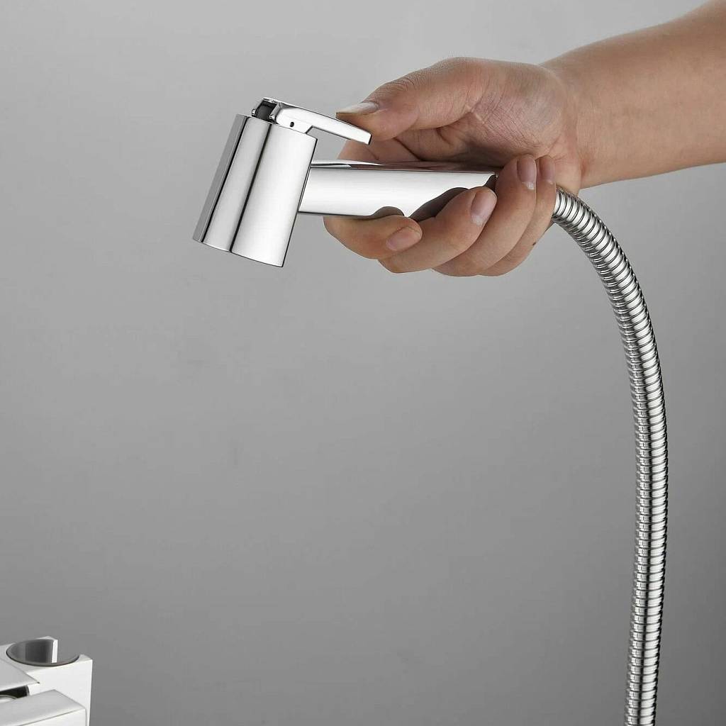 Гигиеническая лейка выполнена из ABS пластика, что гарантирует её износостойкость. Держатель лейки расположен непосредственно на корпусе смесителя, обеспечивая удобство использования и предотвращая случайное падение лейки.