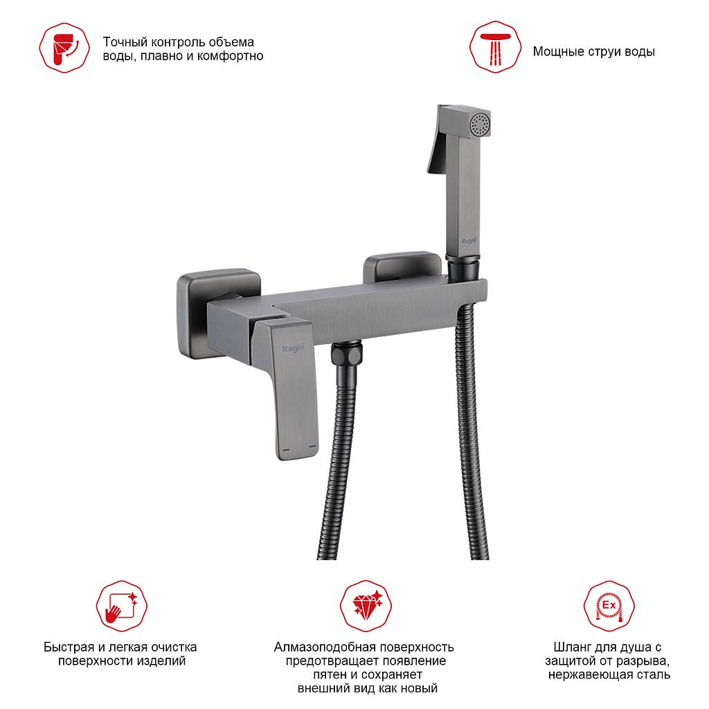 Гигиенический душ со смесителем Raglo R01.51.09, графит купить по цене 11 231 руб.