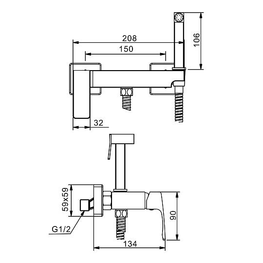 Смеситель с гигиеническим душем R01.51.09 предназначен для обеспечения гигиены в санузле. Крепления идут в комплекте, чтобы их не было видно все скрывается квадратной накладкой, на которой размещается смеситель. Гигиенический душ не занимает много места. При этом он добавляет комфорта в ежедневные процедуры. Для запуска потока воды достаточно немного нажать рычаг расположенный на лейке. Напор регулируется силой нажатия. Латунная душевая лейка работает в одном режиме. Высокопрочный душевой шланг - 1200 мм в оплетки двойного вальцевания с трубкой из синтетического каучука, вращающийся на 360 градусов. Гигиенический душ поставляется в фирменной индивидуальной упаковке.