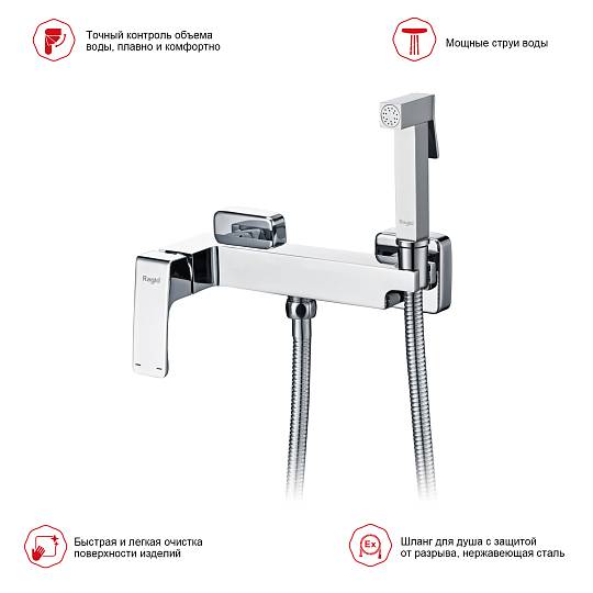 Гигиенический душ со смесителем Raglo R01.51, хром купить по цене 9 777 руб.