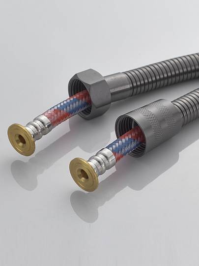 Установка не вызовет сложностей: классический настенный монтаж выполняется на 2 отверстия с помощью эксцентриков из комплекта. В набор также входит душевой шланг в двойной металлической оплётке (длина — 100 см): прочная конструкция защитит от перегибов и продлит срок службы.