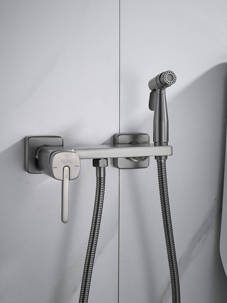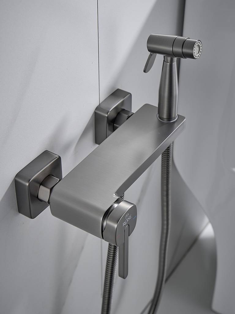 Гигиенический душ со смесителем Rose R315T, оружейная сталь