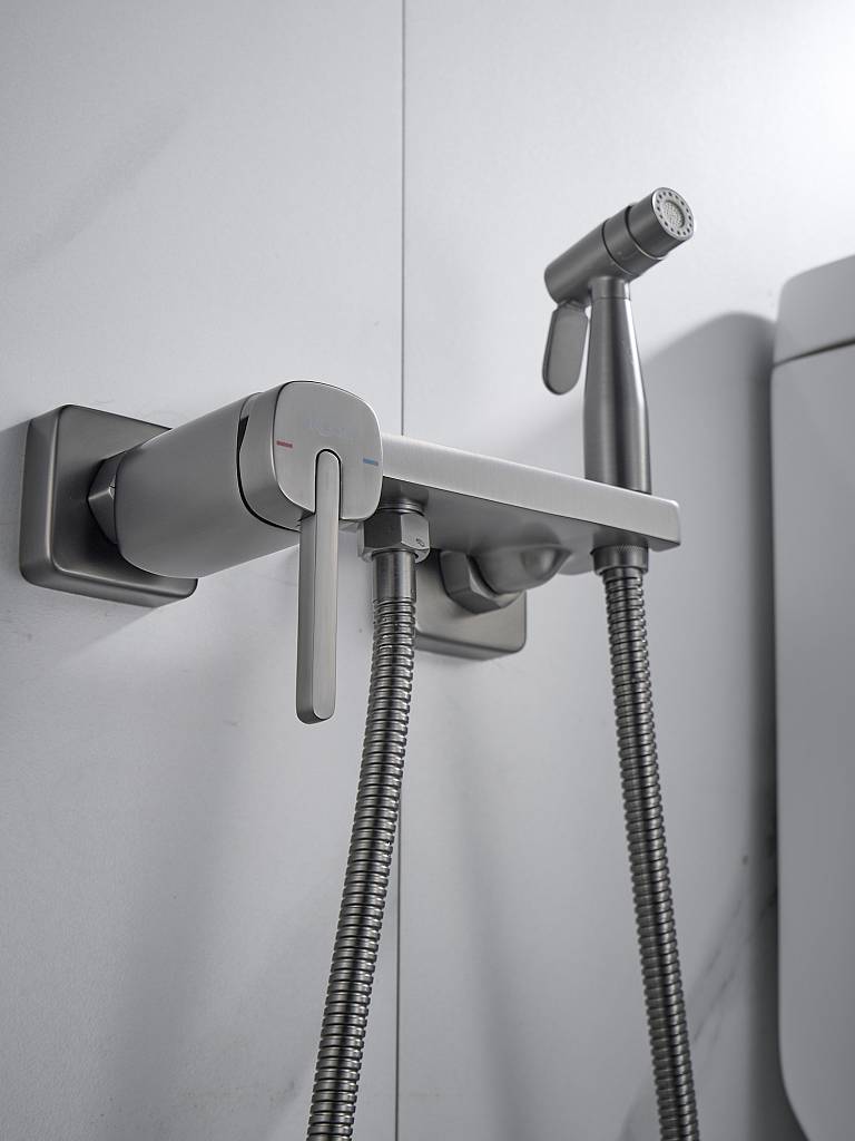 Компактная гигиеническая лейка из ABS‑пластика крепится прямо на корпусе смесителя — это экономит пространство и делает использование максимально удобным. Два режима струи позволяют выбрать оптимальный вариант под ваши потребности: от мягкой аэрированной до интенсивной очищающей.