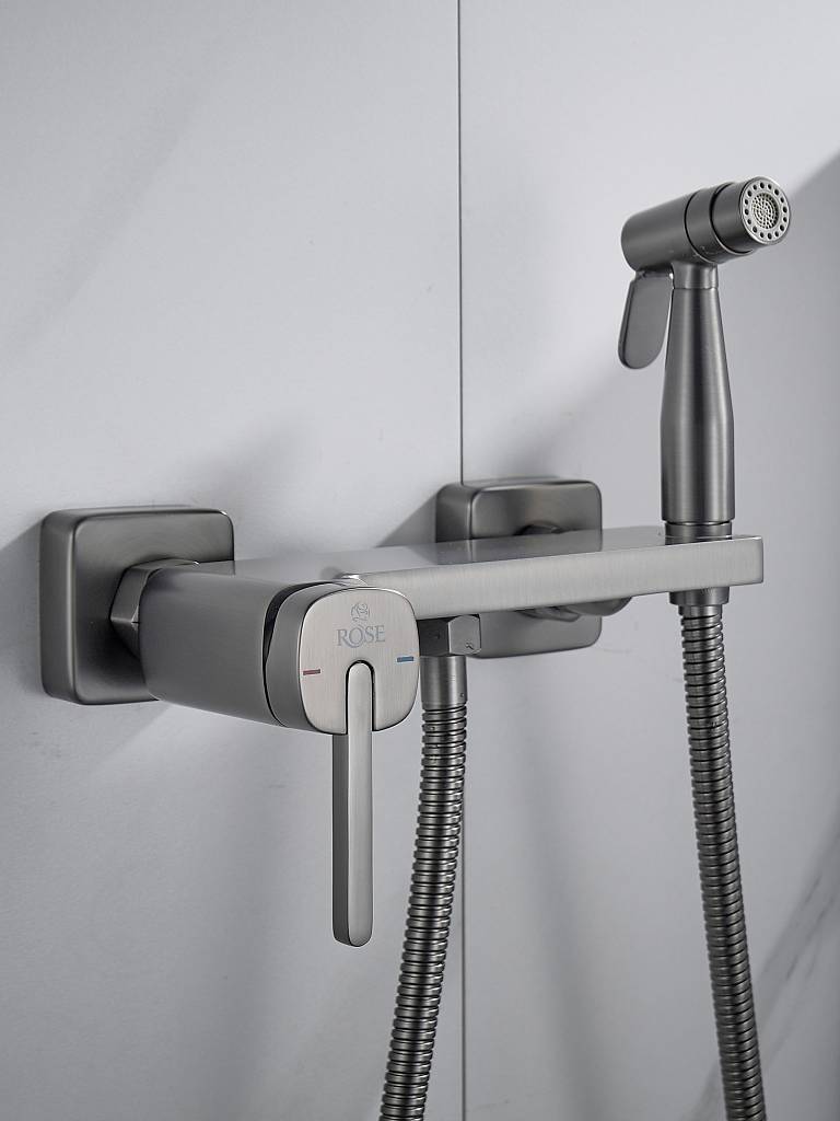 Гигиенический душ со смесителем Rose R315T, оружейная сталь купить по цене 9 999 руб.