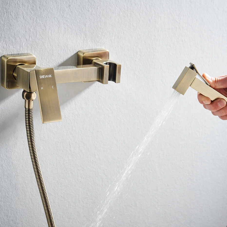 Гигиенический душ со смесителем Shevanik S137Q, бронза купить по цене 7 907 руб.
