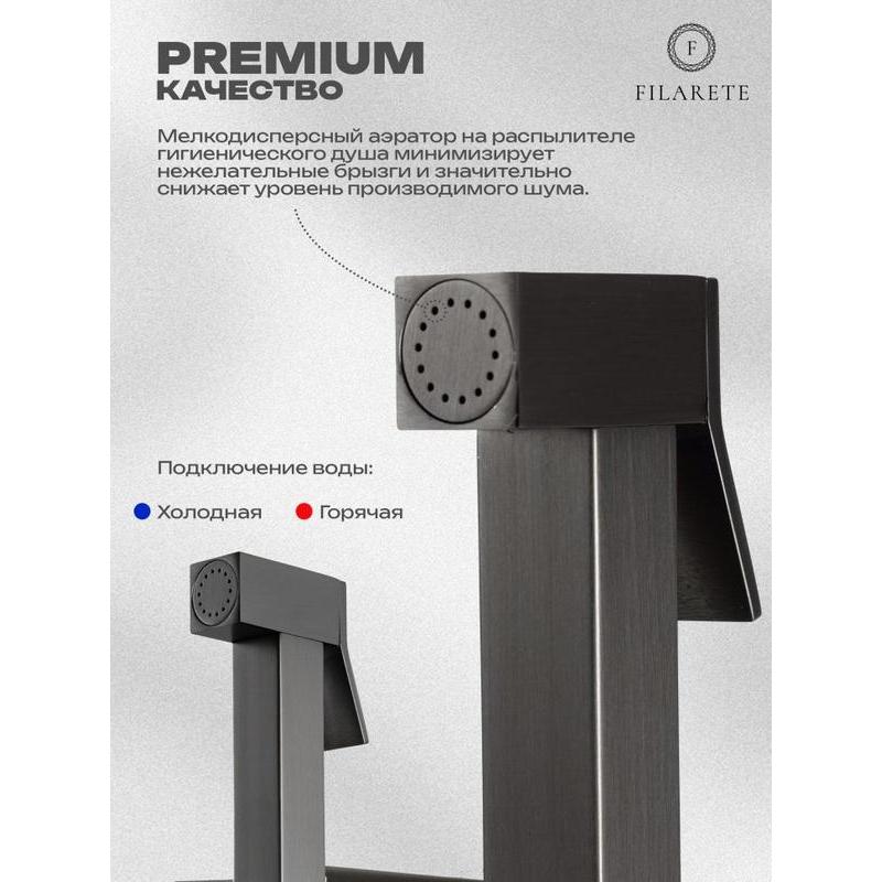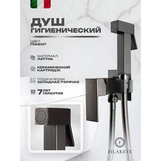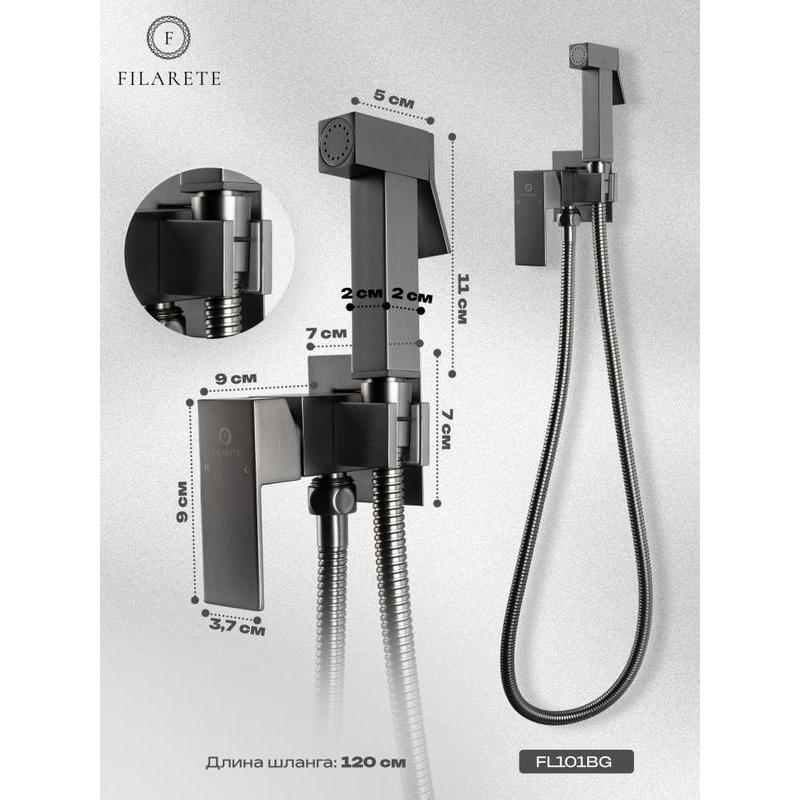 Гигиенический душ со смесителем встраиваемый FILARETE Fing FL101BG, графит