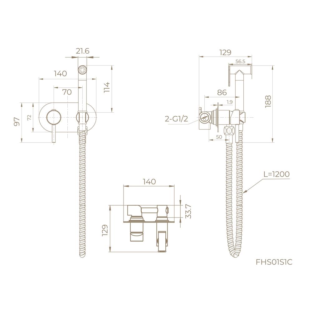 Гигиенический душ со смесителем встраиваемый Knotlor FHS01S1C, хром