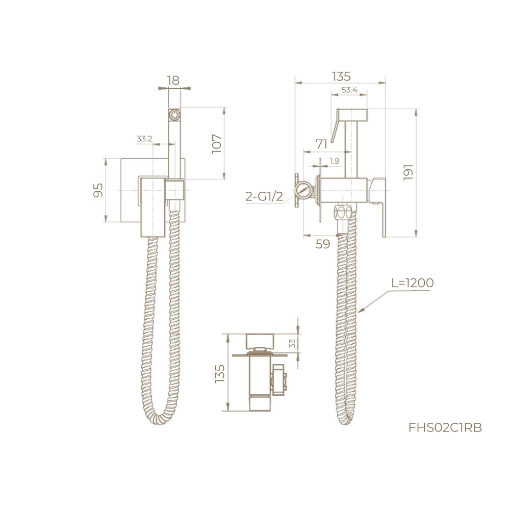 Гигиенический душ со смесителем встраиваемый Knotlor FHS02C1RB, бронза купить по цене 17 380 руб.