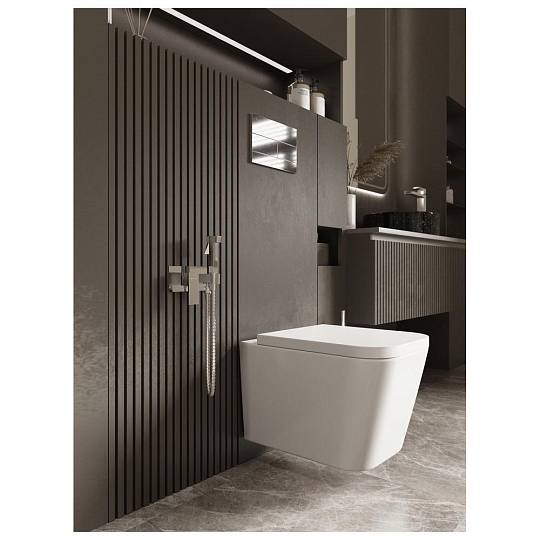 Гигиенический душ со смесителем Knotlor MIST выполнен в глянцевом хромированном исполнении и отличается строгими прямоугольными геометрическими формами. Скрытый монтаж подчеркивает минималистичный дизайн, а латунный корпус с покрытием MirrorShield обеспечивает долговечность.