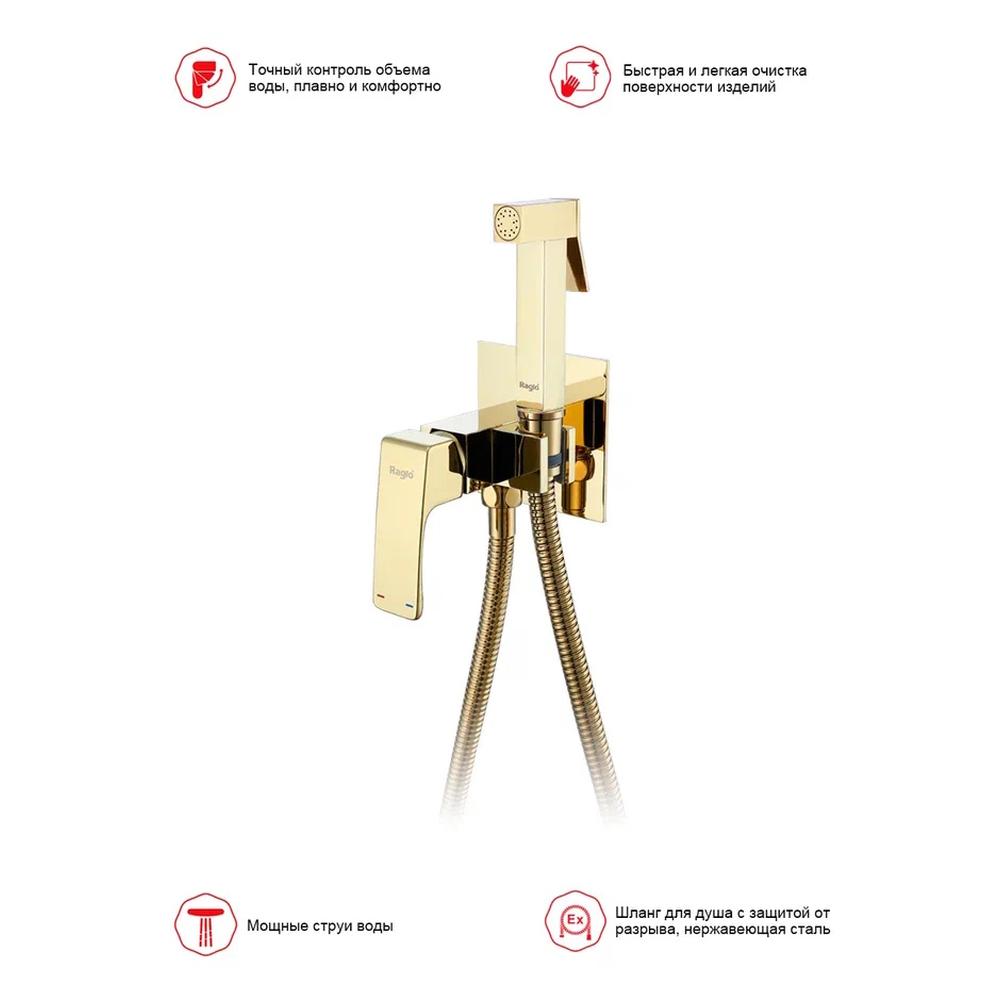 Гигиенический душ со смесителем встраиваемый Raglo R01.52.23, золотой