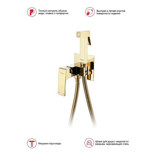Гигиенический душ со смесителем встраиваемый Raglo R01.52.23, золотой купить по цене 12 856 руб.