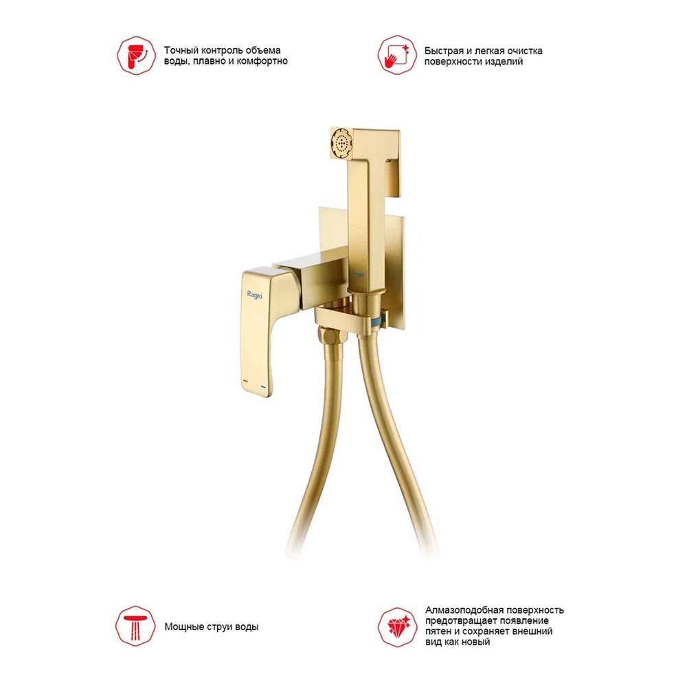Гигиенический душ со смесителем встраиваемый Raglo R02.54.03, сатин золотой купить по цене 13 397 руб.